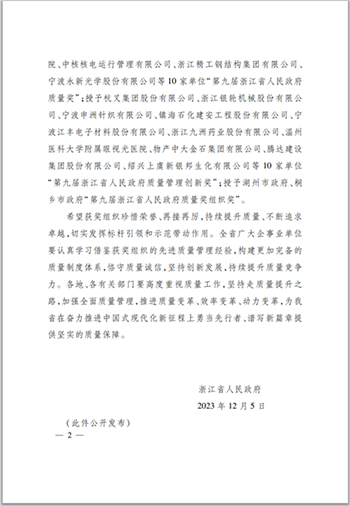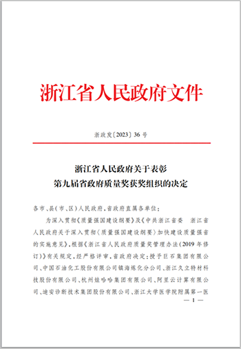 申報獎項 | 浙江省人民政府質量獎