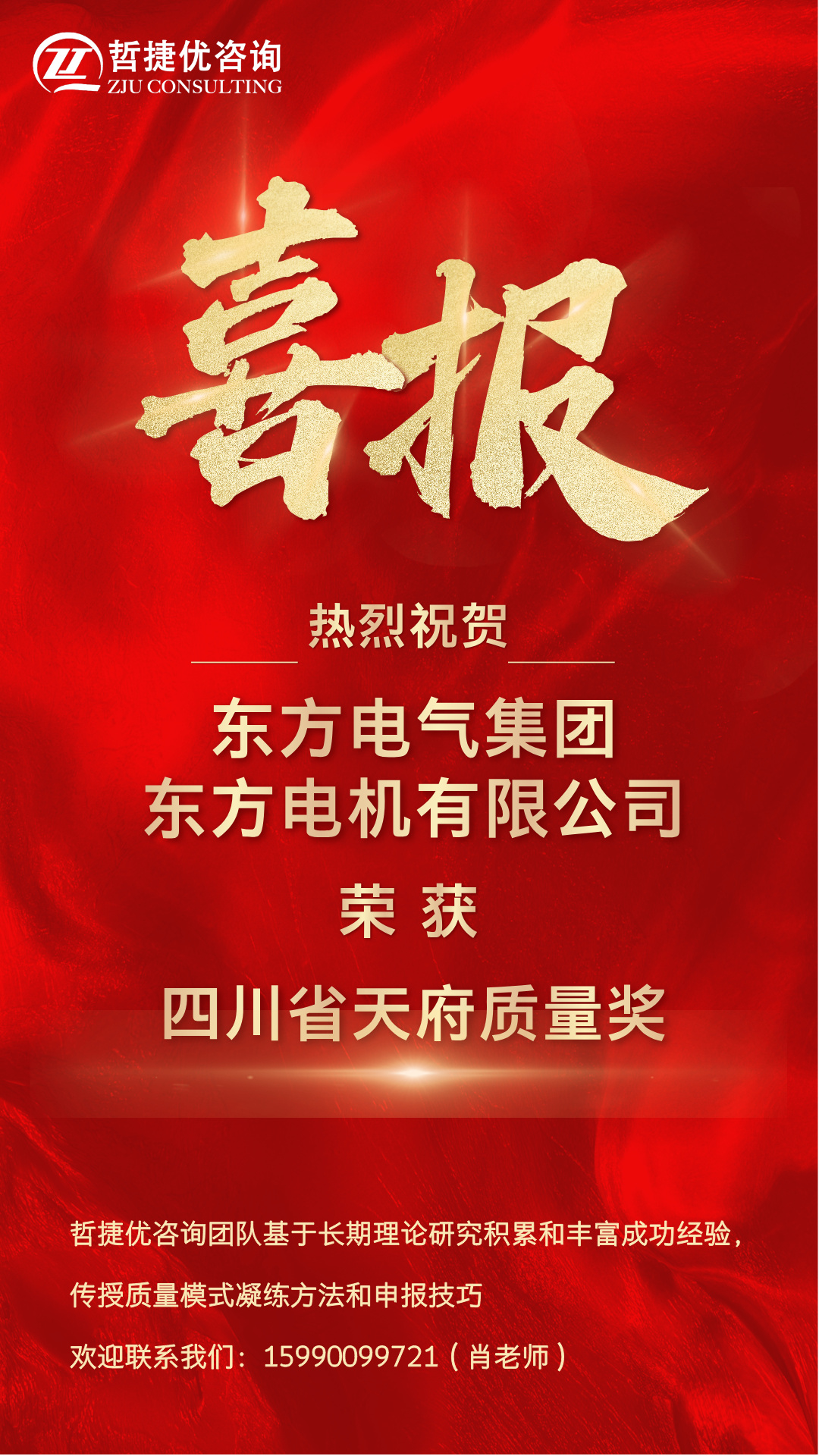 【質(zhì)量獎(jiǎng)創(chuàng)獎(jiǎng)】哲捷優(yōu)咨詢助力東方電氣集團(tuán)東方電機(jī)有限公司榮獲四川省天府質(zhì)量獎(jiǎng)